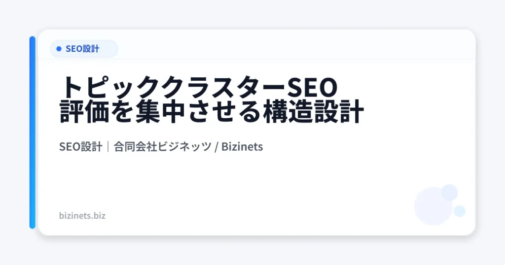 結論 トピッククラスターは「関連性を増やす施策」ではありません。 成果から逆算し、評価を集中させる“構造設計”です。 記事を増やす前に、どの柱に評価を集め、どの導線で収益に繋ぐのかを決めてください。 トピッククラスターSEOとは何か?初心者が最初... -