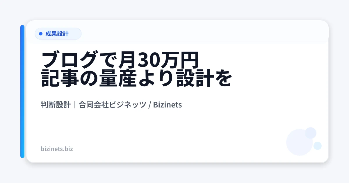月30万円は「量」ではなく「構造」です。