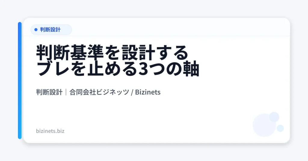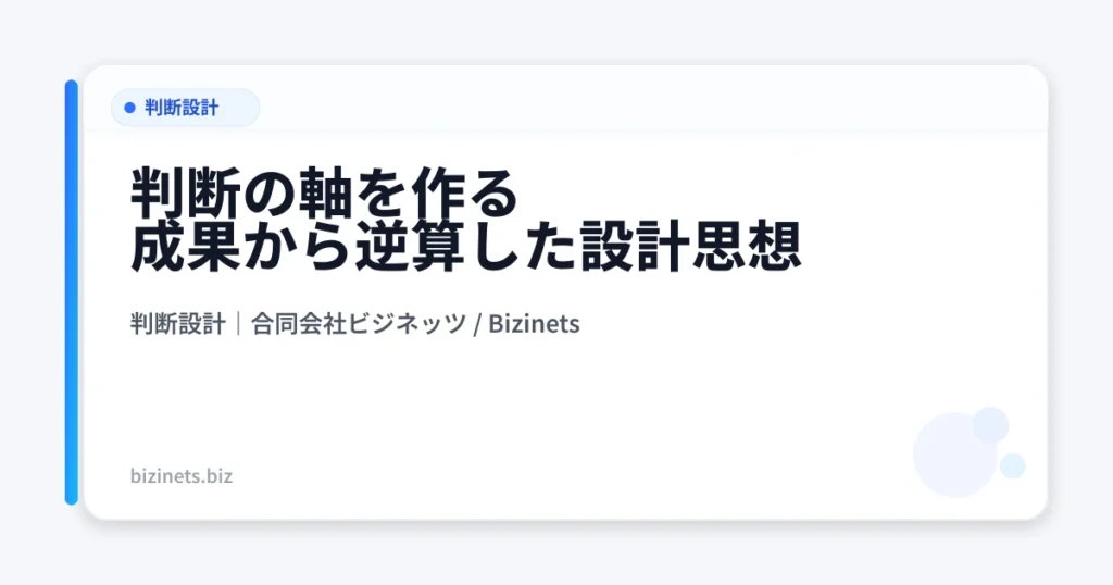 なぜ今、判断設計が必要なのか