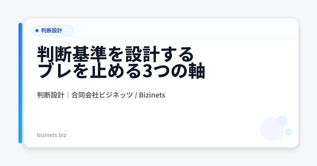 判断設計という考え方そのものを整理した記事も、軸を言語化するときの参考になります。判断設計とは何かを解説した記事では、なぜ判断を「設計」として扱うのかの根拠から整理しています。